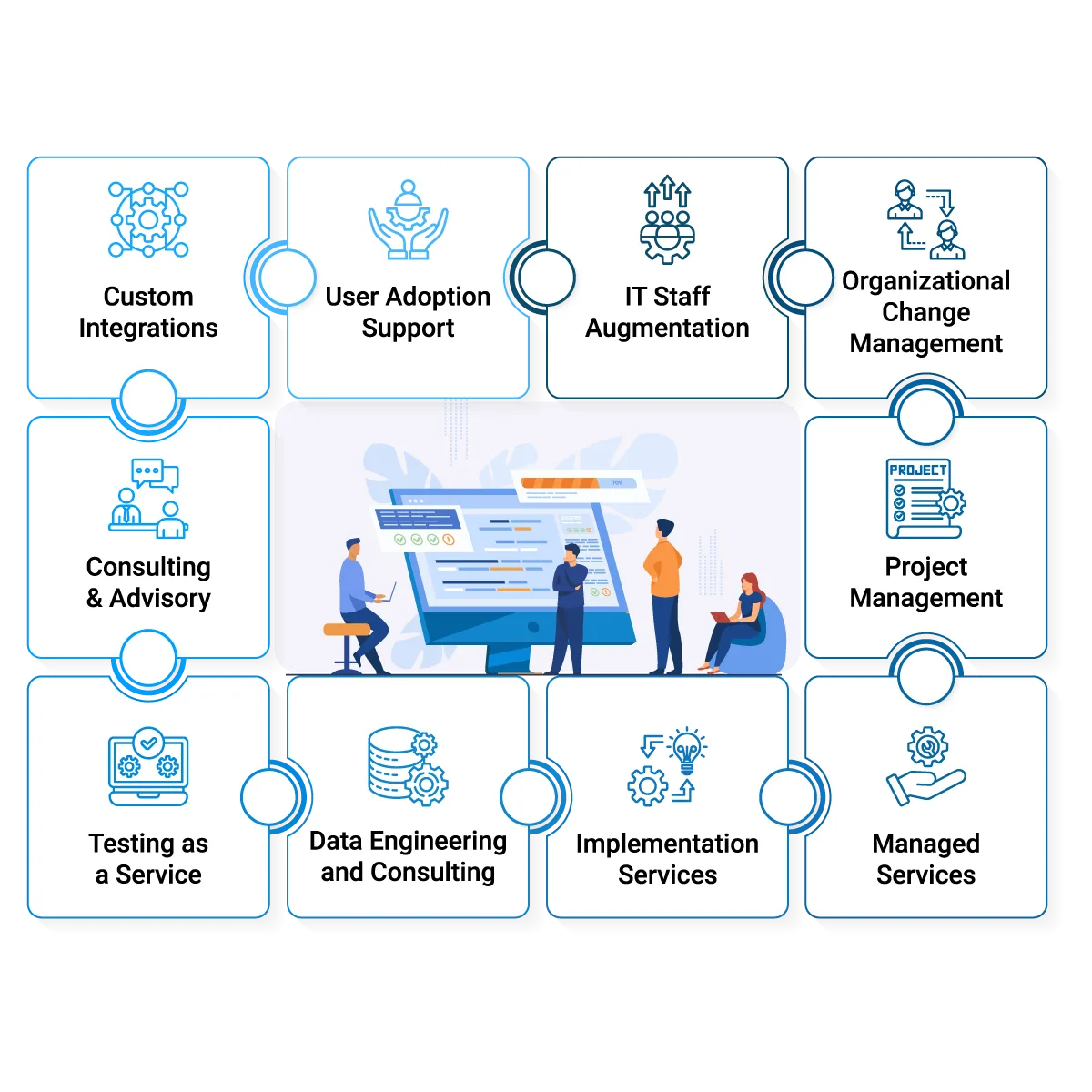 We offer pre-implementation advisory services, implementation support, post go-live optimization, and on-demand, flexible support services.